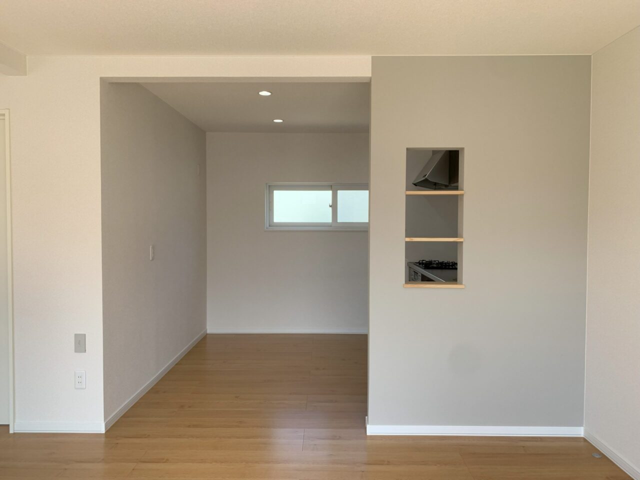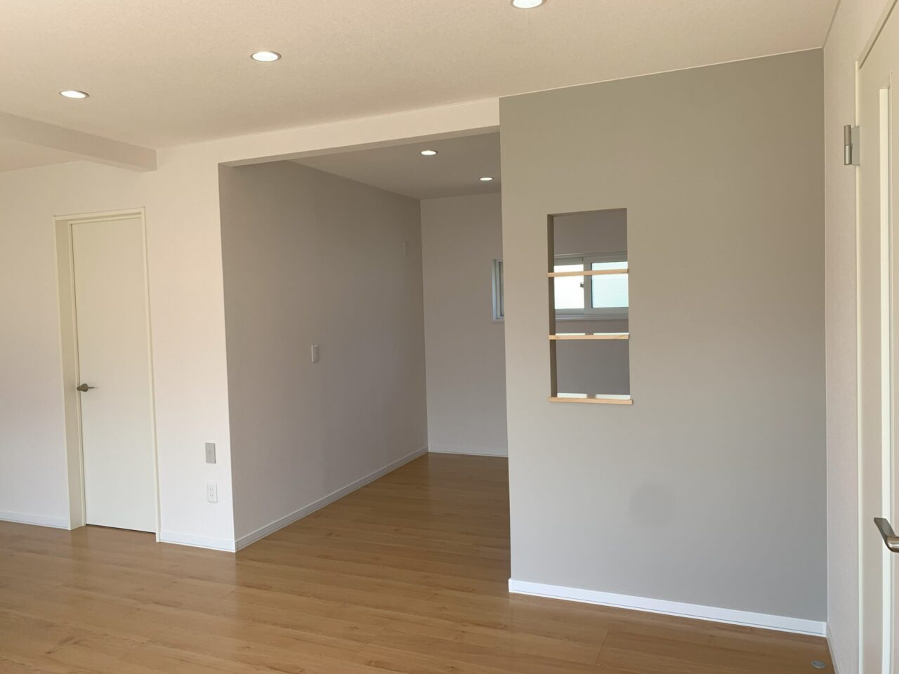 リビングダイニングから目隠しの壁を作り、飾り棚を付けました!!